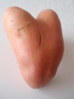 Este ano o amor por aqui parece estar ao rubro. Então, não é que encontrei esta batata quando preparava a sopa dos miúdos! O Amor anda por aqui, não me digam que não!