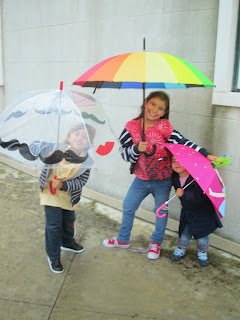 os miúdos a dar passeio sob uma chuva torrencial, mas digo redondamente para